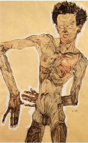 Egon Schiele (1890–1918) Protejatul austriac al lui Gustav Klimt, Egon Schiele, a reușit să dezvăluie condiția umană prin forme unghiulare, autoportrete pătrunzătoare și o vulnerabilitate dezarmantă. Opera sa explorează cu intensitate teme precum sexualitatea, mortalitatea și anxietatea existențială, dezvăluind adesea adevăruri incomode despre natura umană.