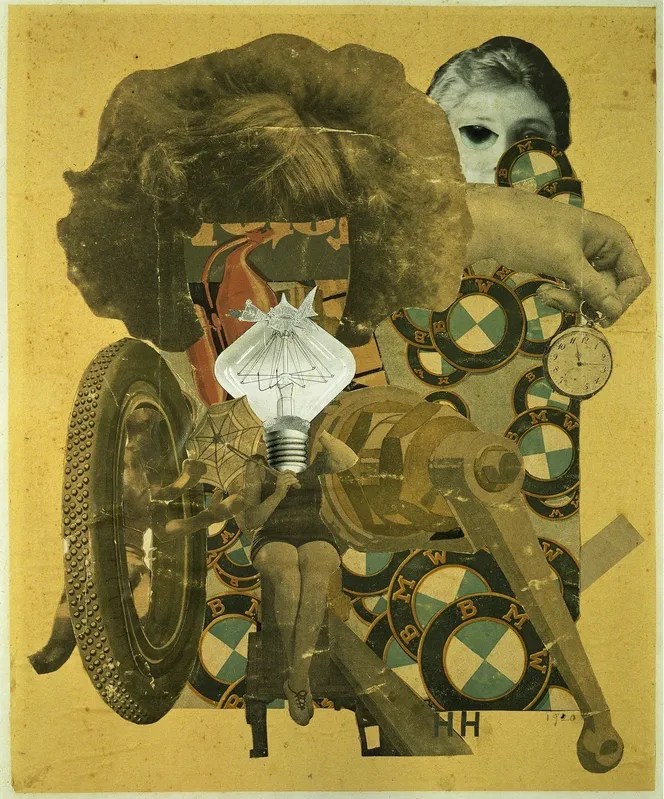 În „Das schöne Mädchen”, Hannah Höch construiește corpul feminin ca pe un ansamblu hibrid, alcătuit din elemente mecanice și imagini din cultura de masă. Figura nu mai funcționează ca un organism unitar, ci ca un montaj între corp, tehnologie și societate.
