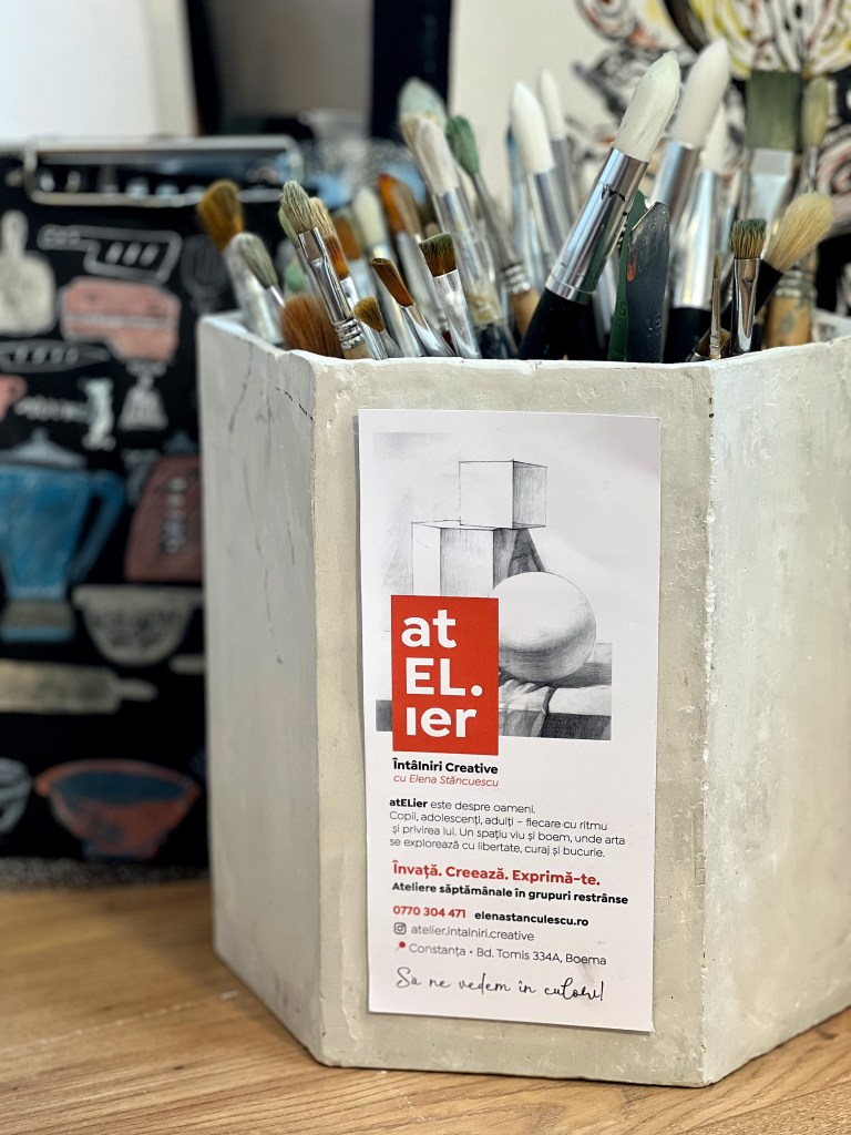 Atelierul nu e doar despre tehnică. E despre a învăța să vezi, să simți, să dai formă lumii tale interioare. E un spațiu deschis tuturor – copii, adolescenți, adulți – unde fiecare culoare, fiecare linie, devine o lecție de răbdare, atenție și bucurie.